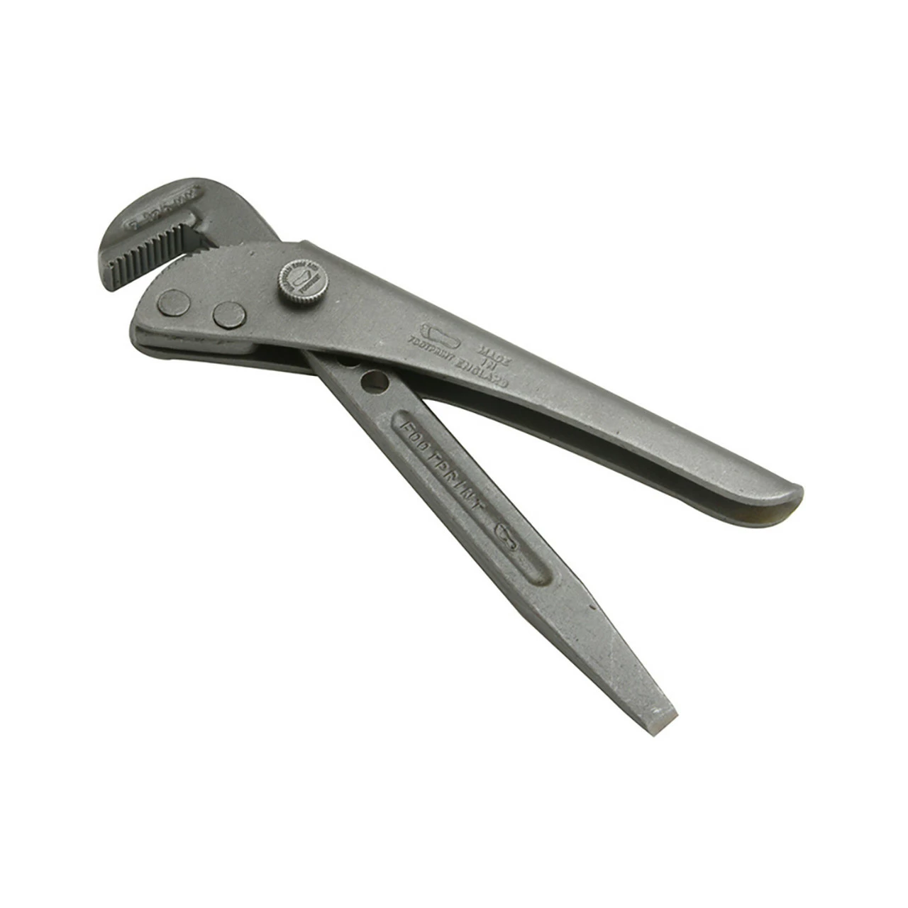 This traditional plumbers tool is an all purpose wrench which grips the workpiece tighter as more pressure is exerted. Removable screw for easy adjustment. This style has a screwdriver end on the handle.
