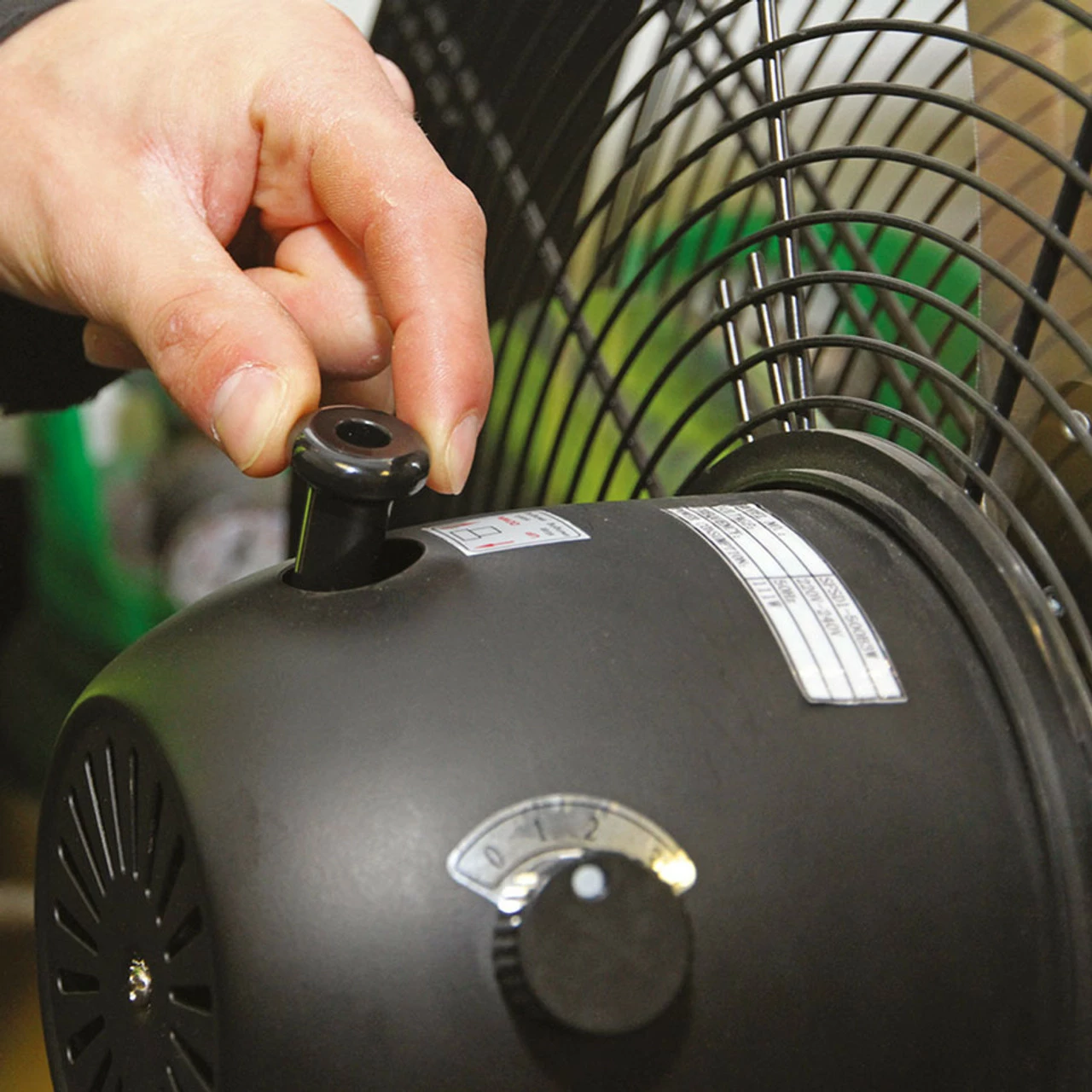 High velocity fan suitable for movement of huge volumes of air. Features 3-speed settings for choice of airflow, height adjustable stand, tilting blade cradle and oscillation. Fully guarded blades with large diameter base for safety and added stability. Suitable for industrial, commercial, agricultural, workshop and showroom applications.